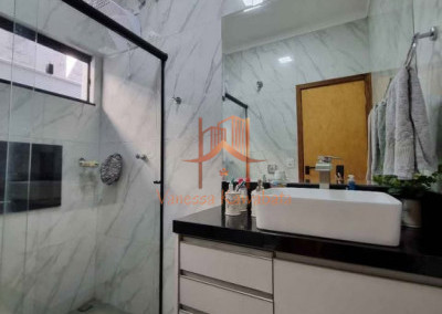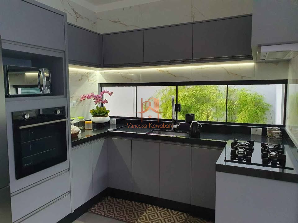 GARAGEM - Garagem ampla, grade (ferro maciço), portao com motor. AREA SOCIAL - Sala de estar e jantar (pé direito alto), com sanca; - Cozinha interna interligada com a sala e a área gourmet - Área gourmet ampla, com churrasqueira, cooktop e ilha, fechada com porta deslizante; - Lavabo com acesso a área gourmet e quintal; AREA ÍNTIMA - 2 Quartos amplos; - 1 banheiro social; - 1 Suíte Master, com closet e banheiro (chuveiro duplo); - 1 Escritório. AREA DE SERVIÇO - 1 Lavanderia; - 1 Depósito; SEGURANÇA Cerca elétrica, alarme, interfone com câmera, câmera frontal e fundo. MOBÍLIA PLANEJADA - cozinha; - área gourmet; - closet; - sala; - banheiros (suíte e social)
